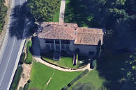 la D-7, sur la rive sud de la route. Logis quadrangulaire flanqué de