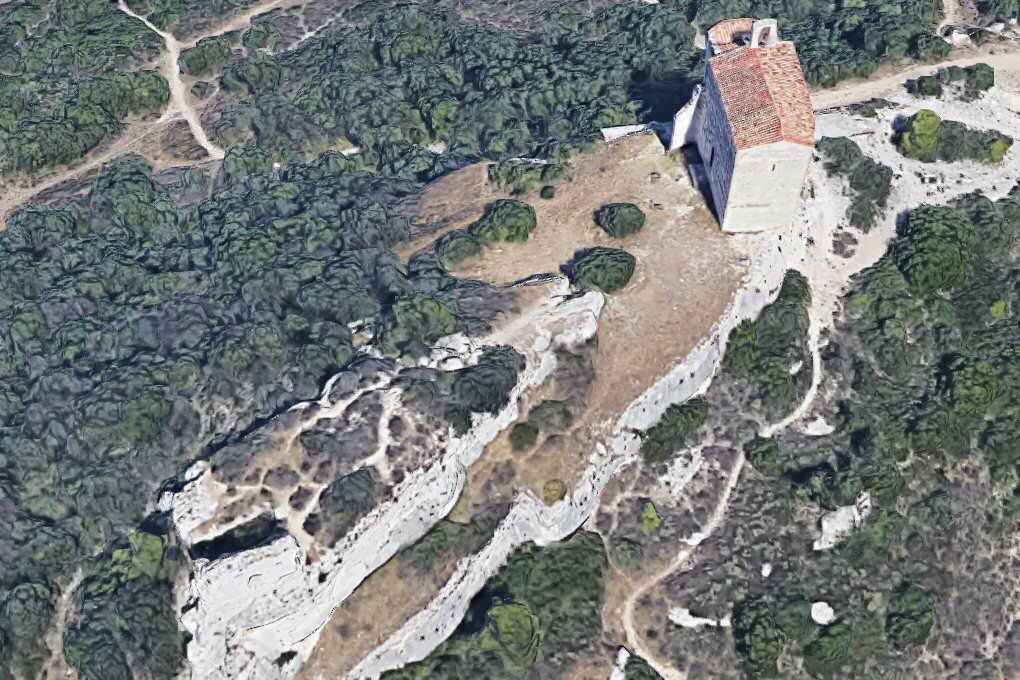 méridionale de l’autoroute A-55. Au plus haut des ruines du vieux village,