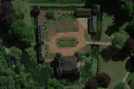 vaste château en briques, entouré de fossés, cantonné à chaque angle d’une