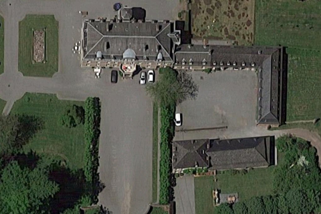le château apparaît si profondément enfoui dans ses haies d’arbres et ses