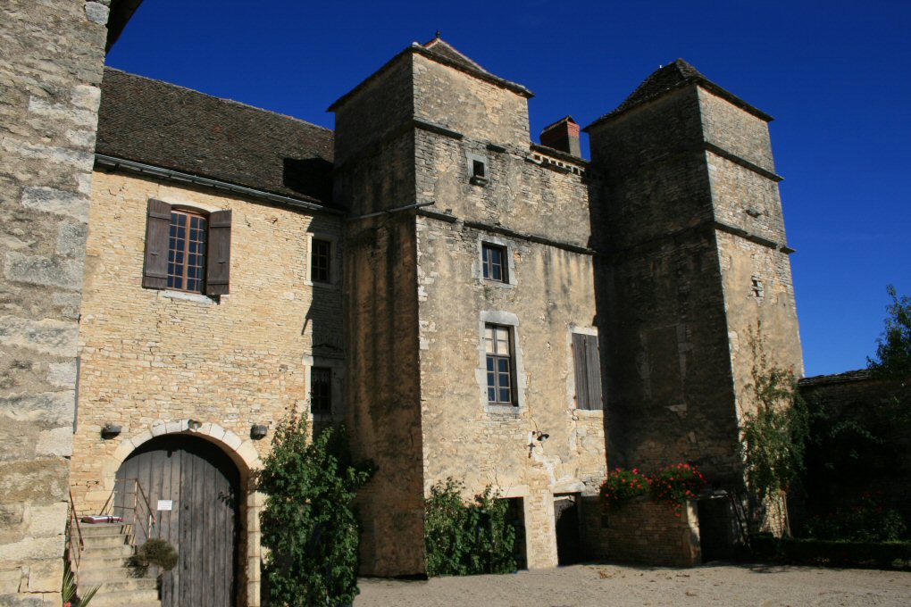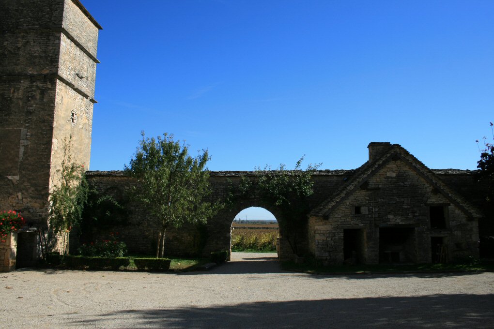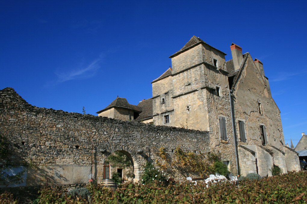 l'ouest et sur les vignes à l'est. Ensemble composé de tours, de logis et de
