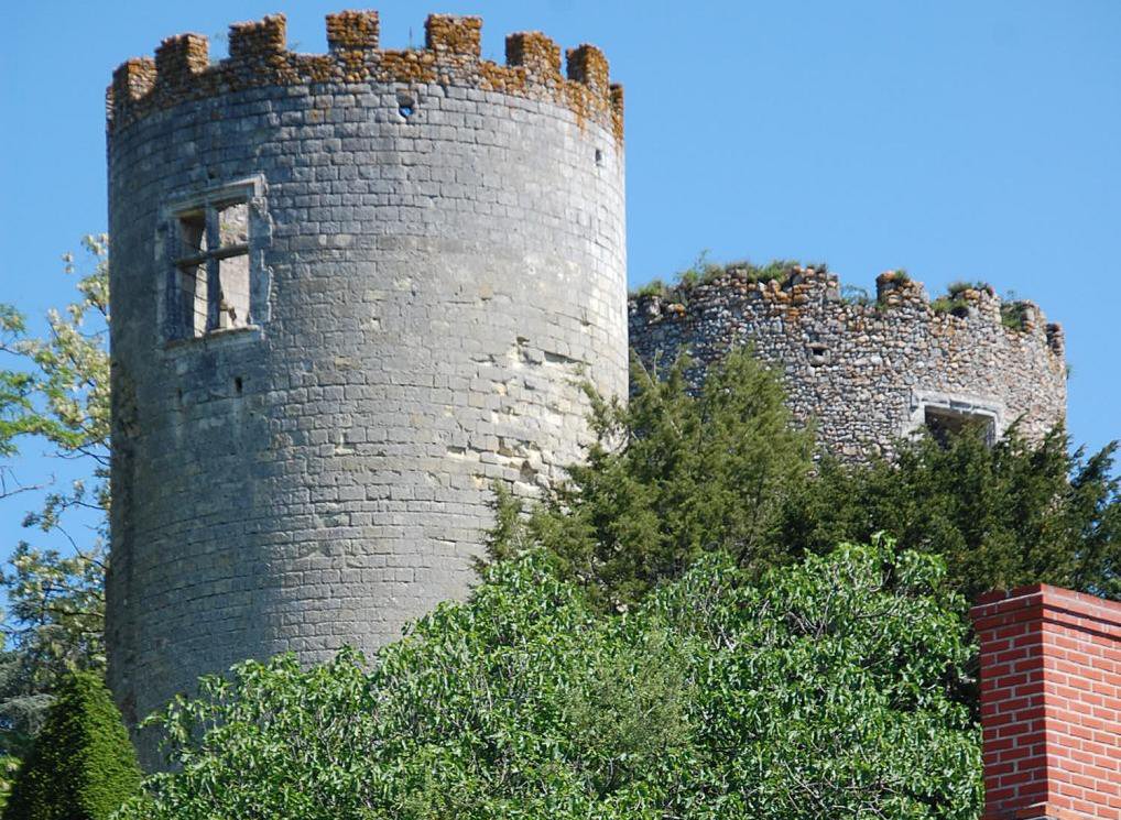 subsistent la tour Est, la tour sud du XIIIe siècle, et la base de la tour