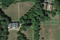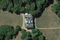 allée rectiligne bordée d’arbres conduit le visiteur a la façade sud du