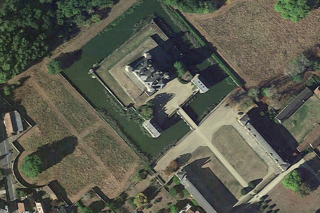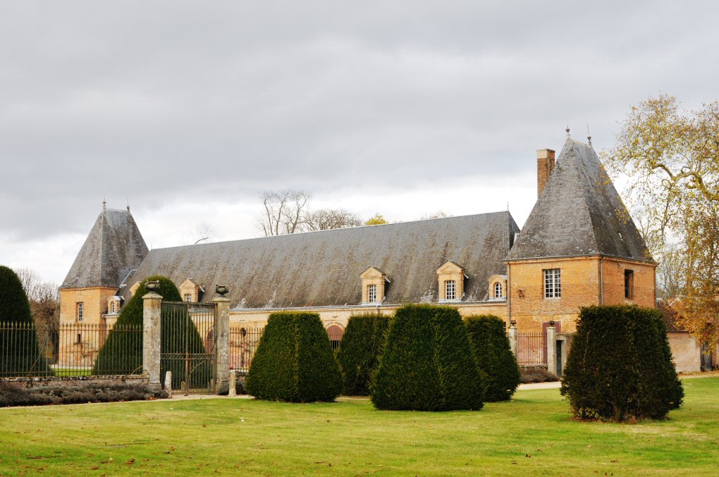 et avant-cour bordées d’imposants communs, ses grilles, ses douves en eau
