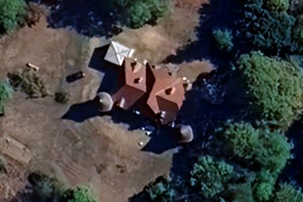 bardeaux, et de l'autre, de deux pavillons rectangulaires. La toiture en
