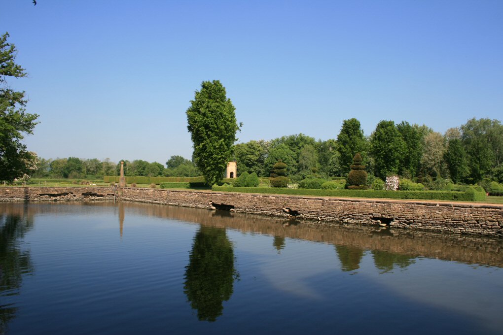 terre-plein, le miroir d'eau, les douves et le mur de clôture : inscription