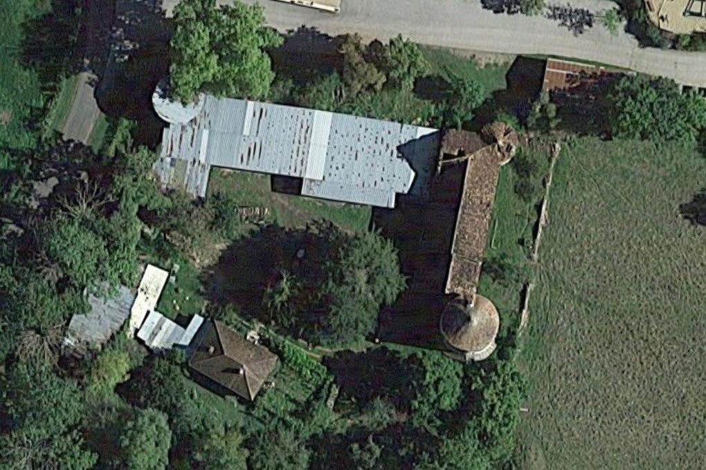 toujours, mais a été transformé en hangar agricole. La tour (dans l'angle