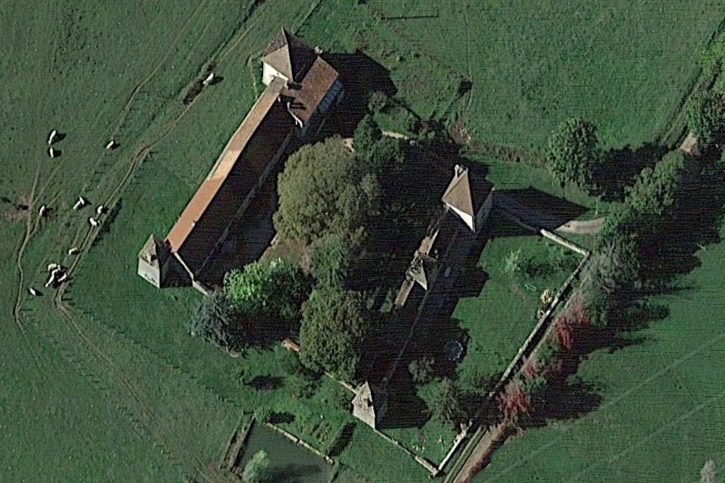 pour l'autre quart... Savoir, une maison entourée de fossés et ses