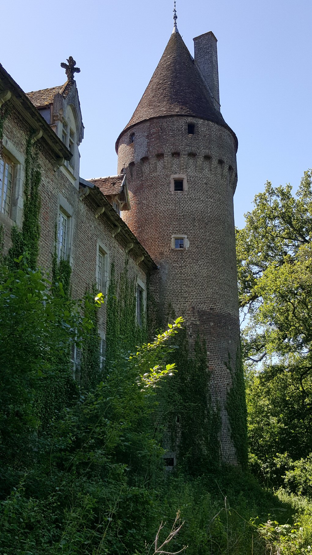 à croisées sans décors. Une tourelle d'escalier octogonale s'élève dans