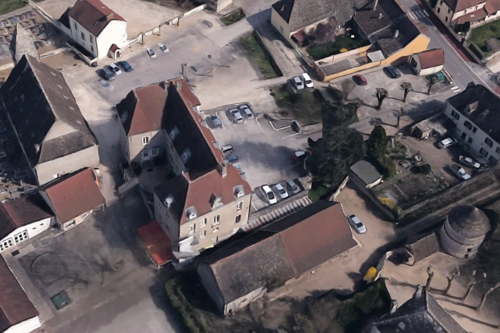 terrasse dominant la rive nord de la Saône, au centre du village. L'église