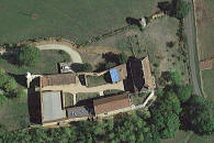 par une porte charretière plein cintre avec à droite une porte piétonne