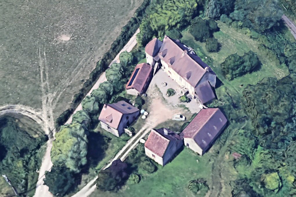 manoir entouré de fossés asséchés, avec vestiges d'un pont dormant. Le